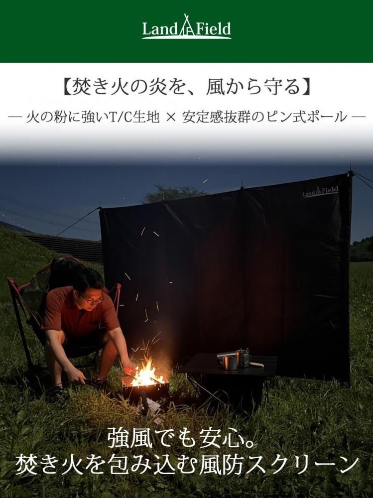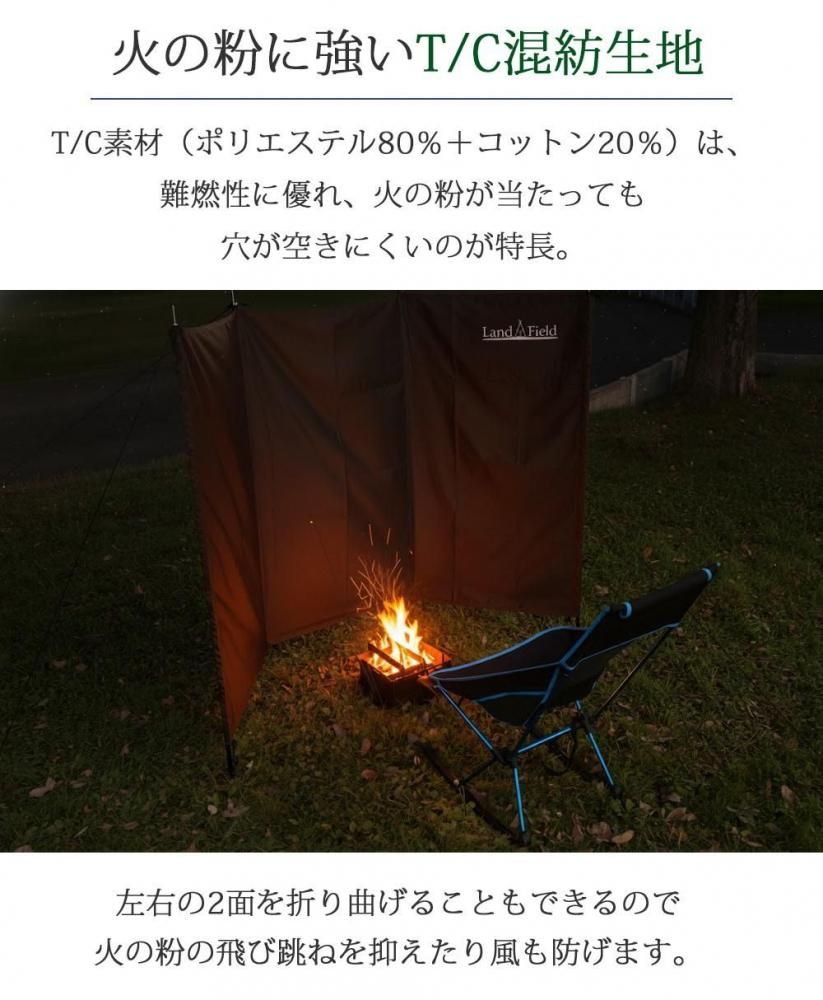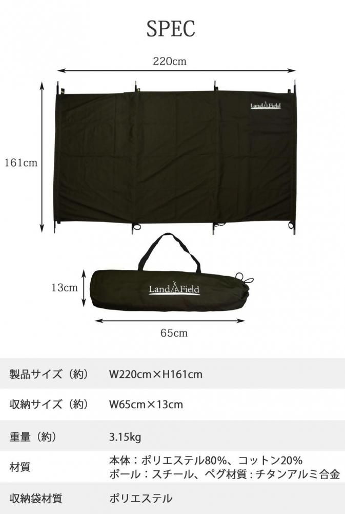 ウインドスクリーン 陣幕 風防 幅220cm 高さ161cm 大型 焚き火 風よけ 仕切り 目隠し 軽量 アウトドア キャンプ Landfield LF-WS030-GR lf-ws030-gr