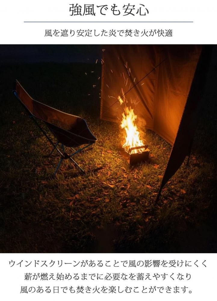火起こし、焚火の際の風よけとしてだけではなく、隣との仕切り、目隠しとしても活躍します。